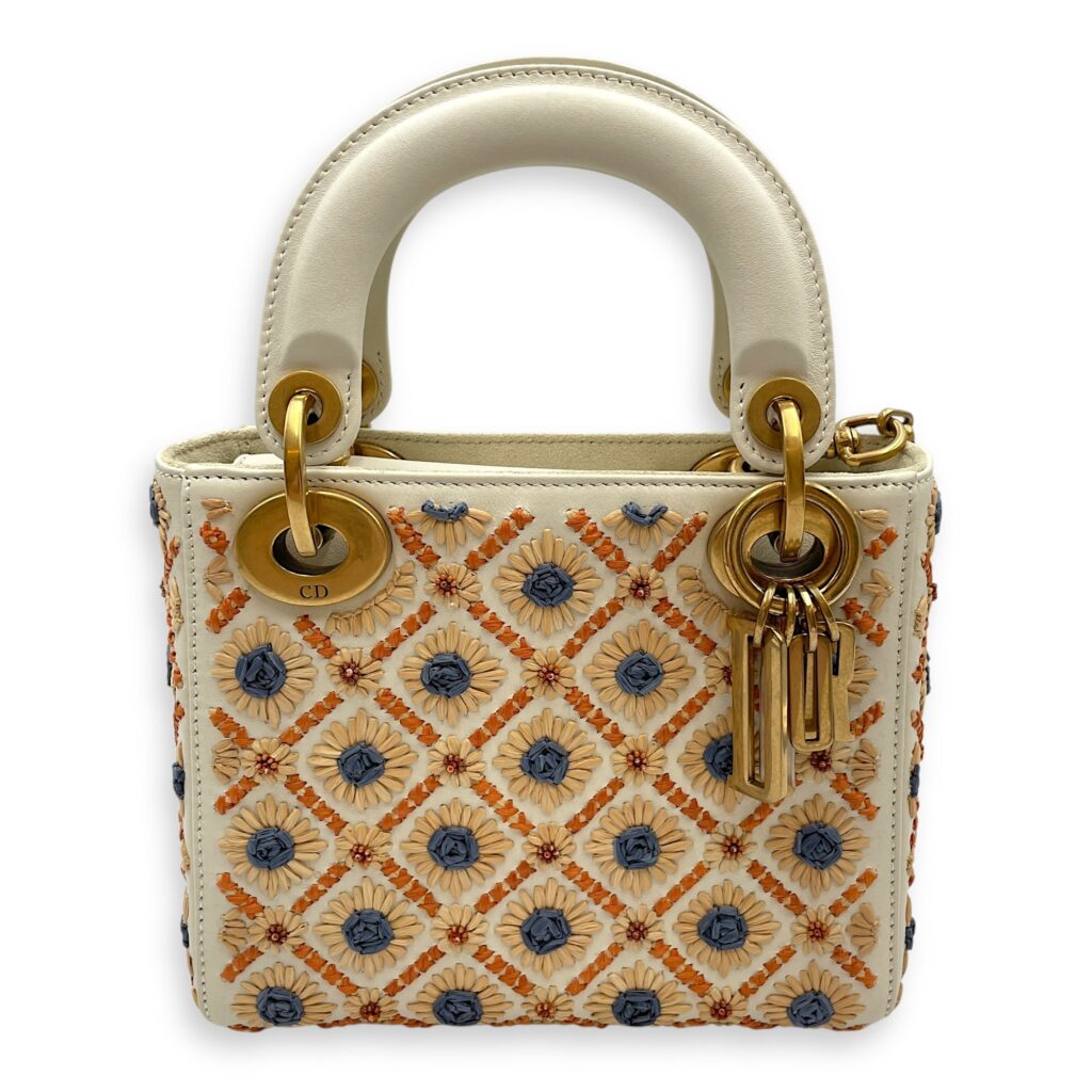 Lady Dior Mini Multi-Color Top Handle Bag in Calfskin, Brushed Gold hardware