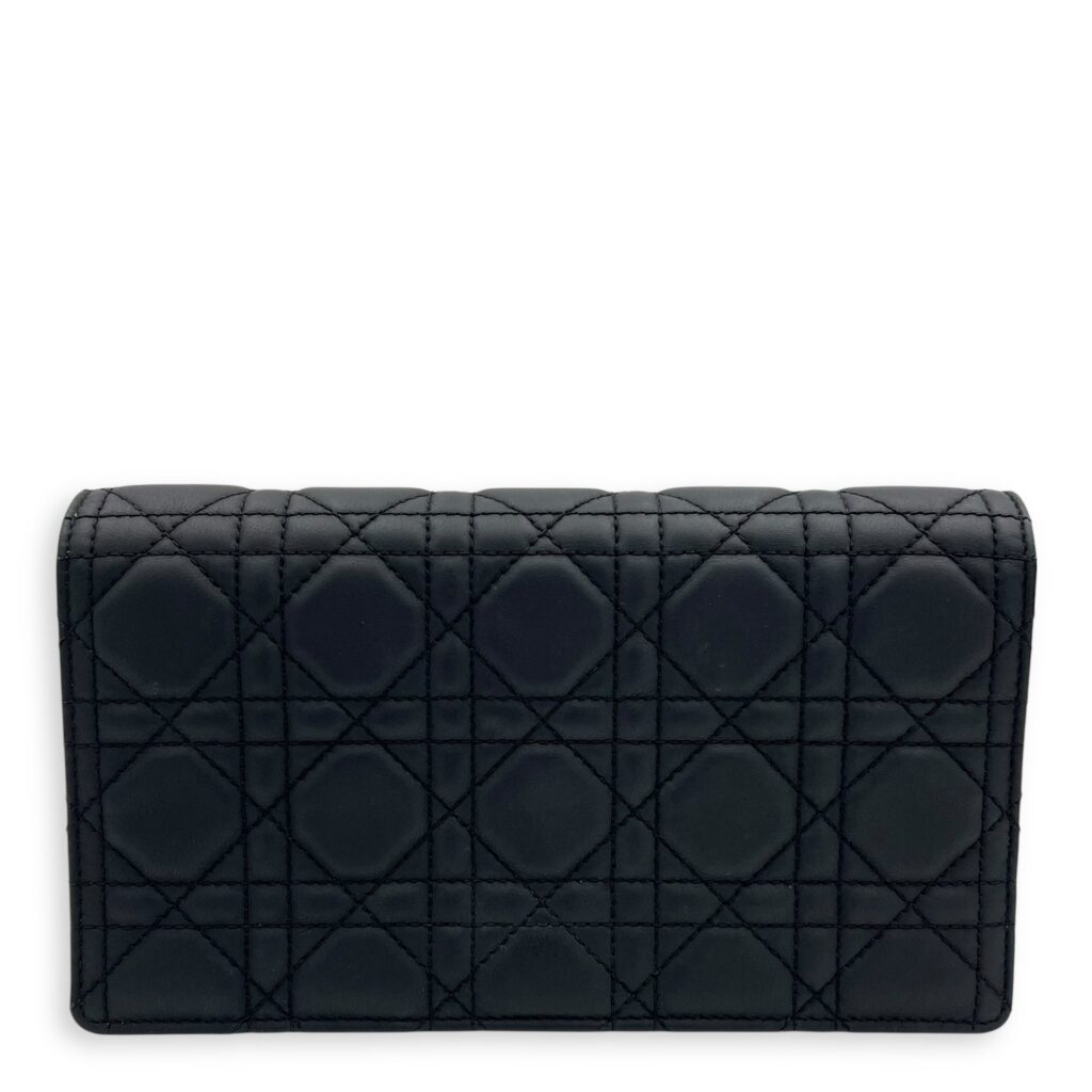 Lady Dior Pouch With Strap Black Wallet On Chain in Calfskin, Silver hardware