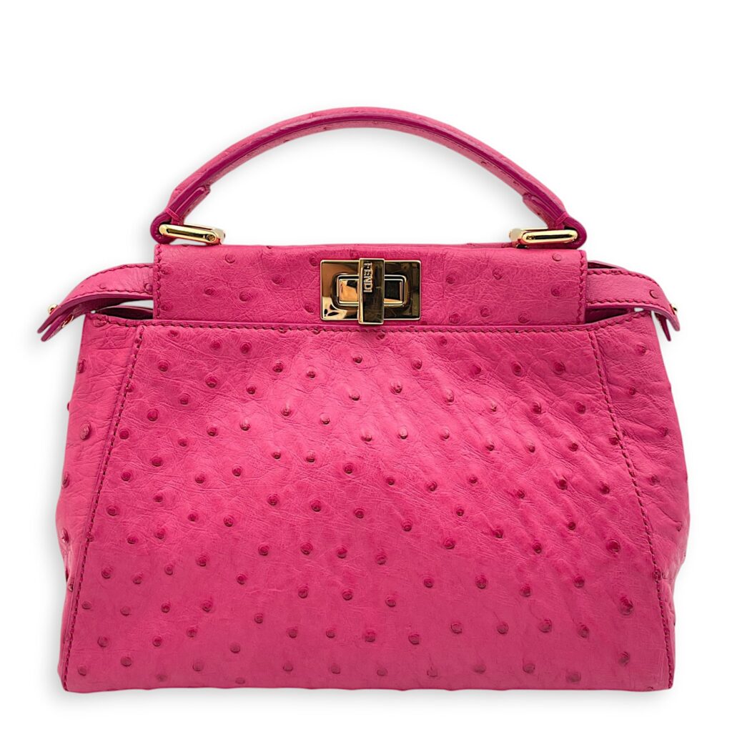 Peekaboo Mini Pink Crossbody Bag in Ostrich, Gold hardware