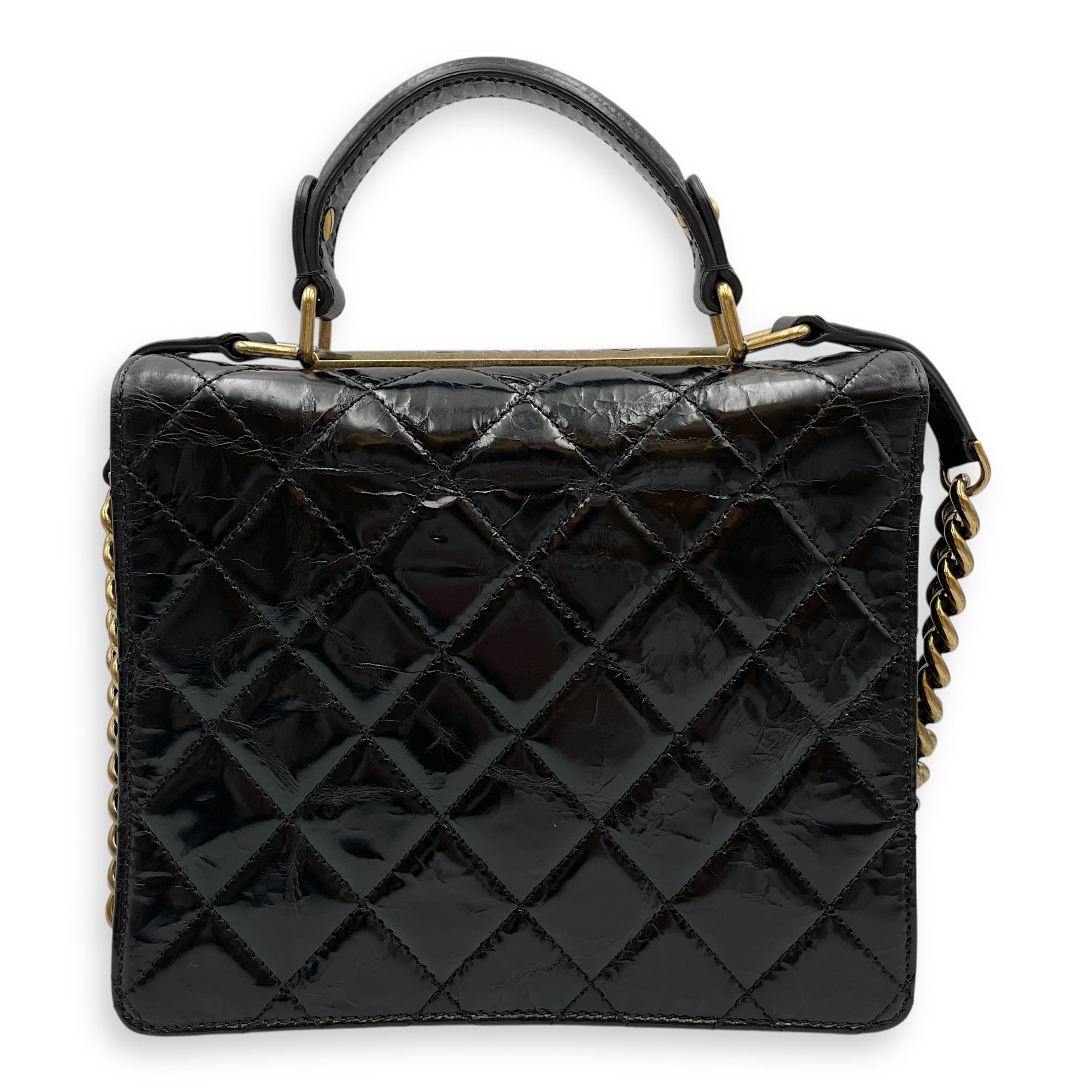 Be the first to review “Crinkled Quilted Rita Flap Black Shoulder Bag in Distressed Leather, Brushed Gold hardware”