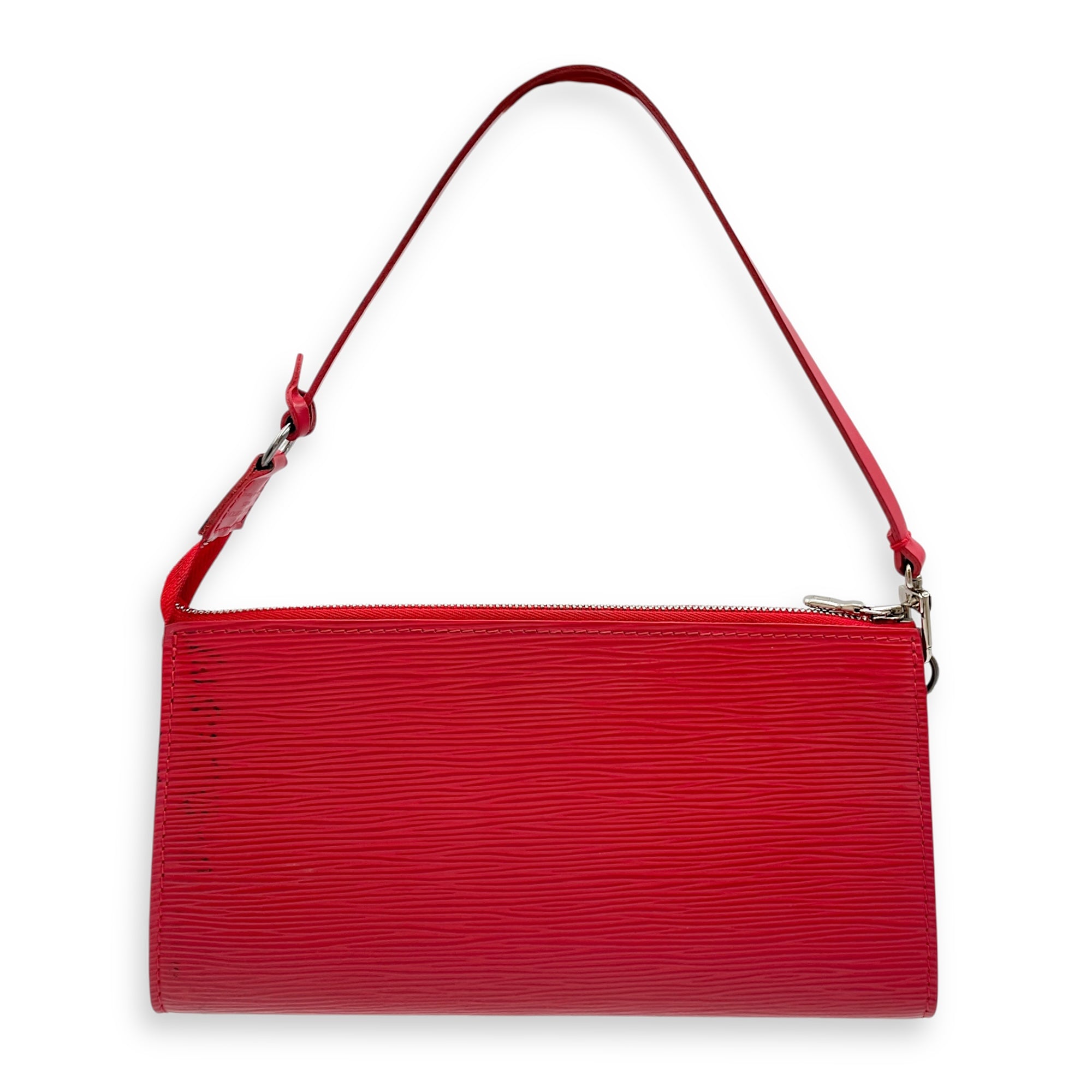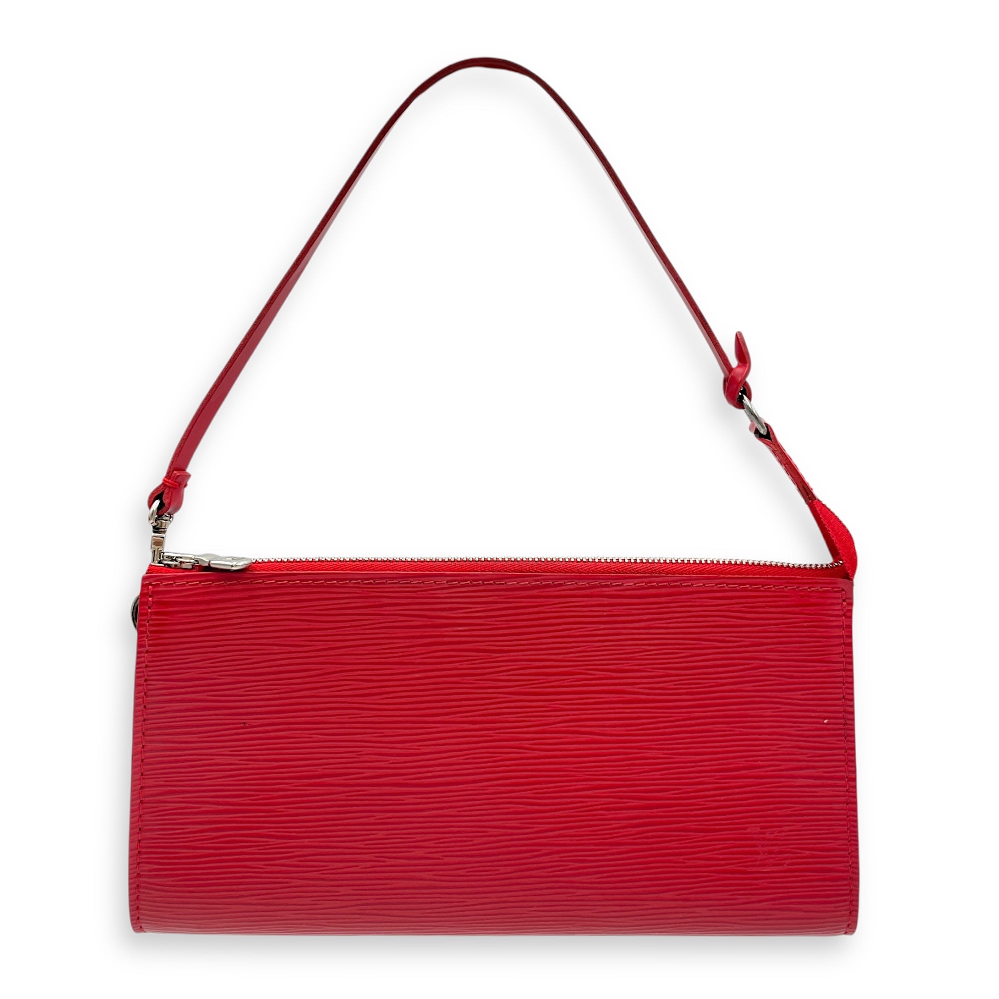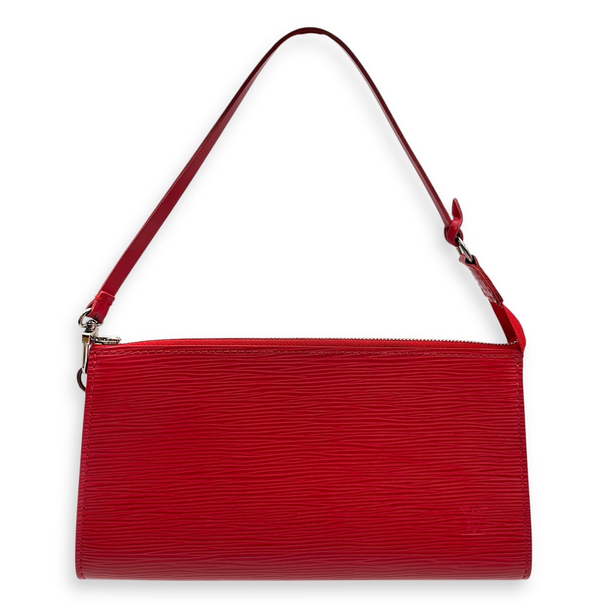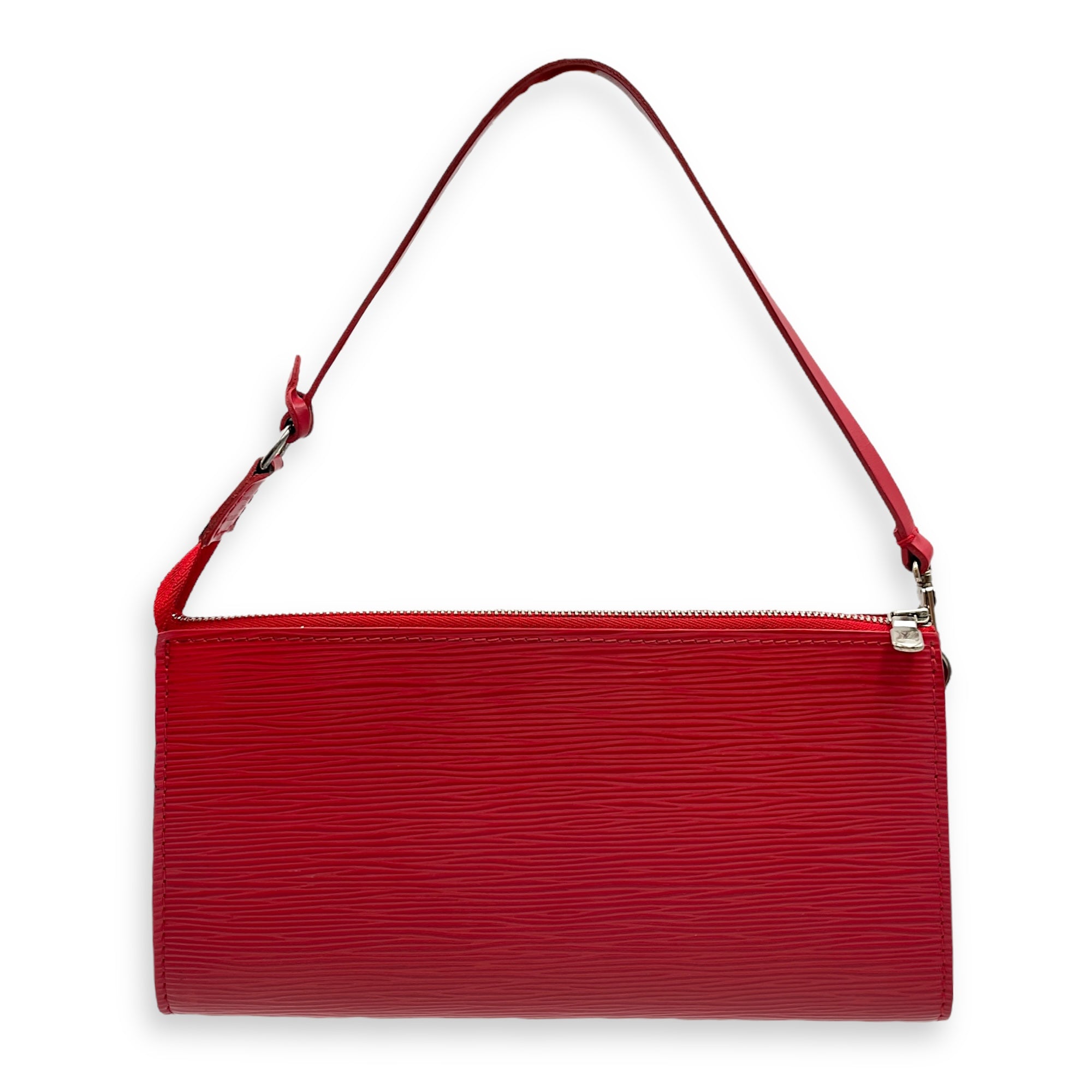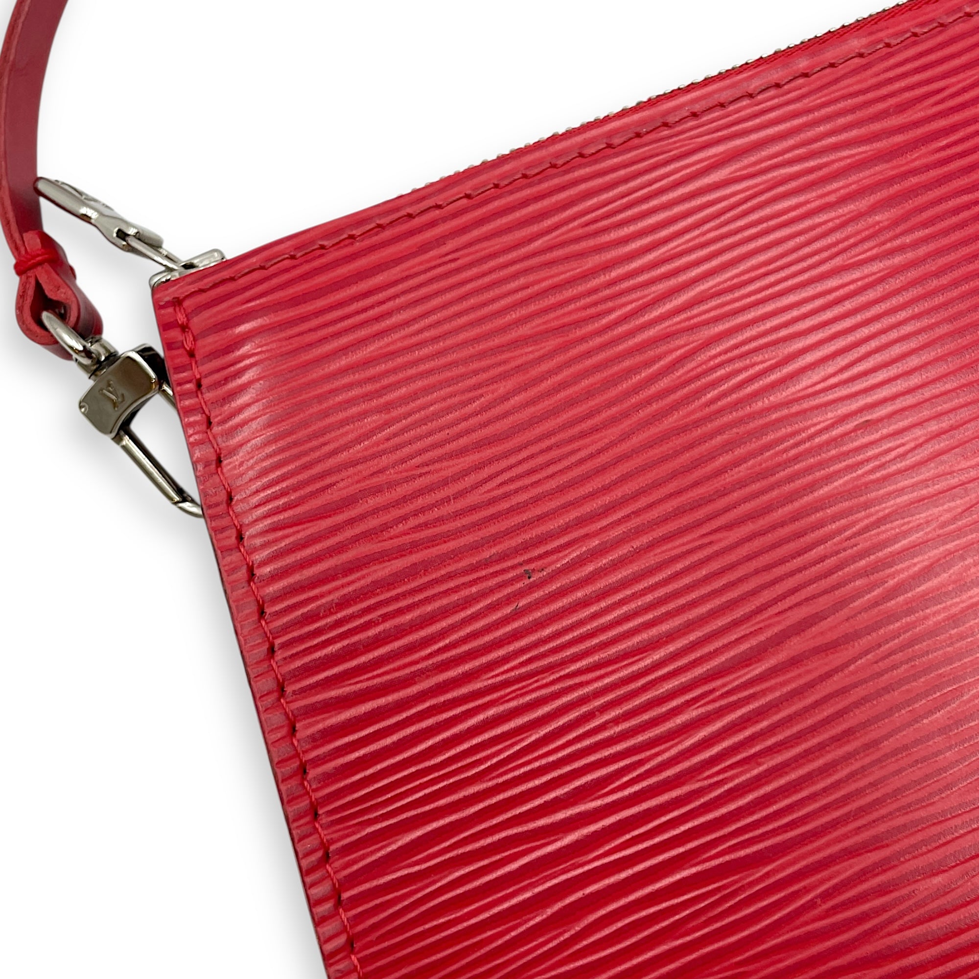 Epi Leather Red Pochette, Silver hardware