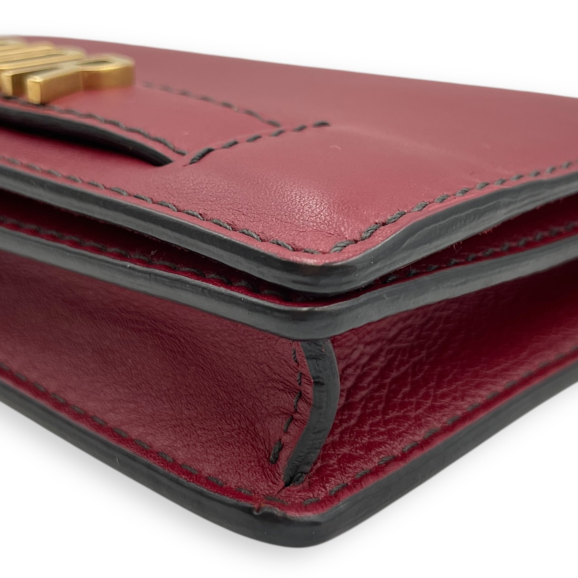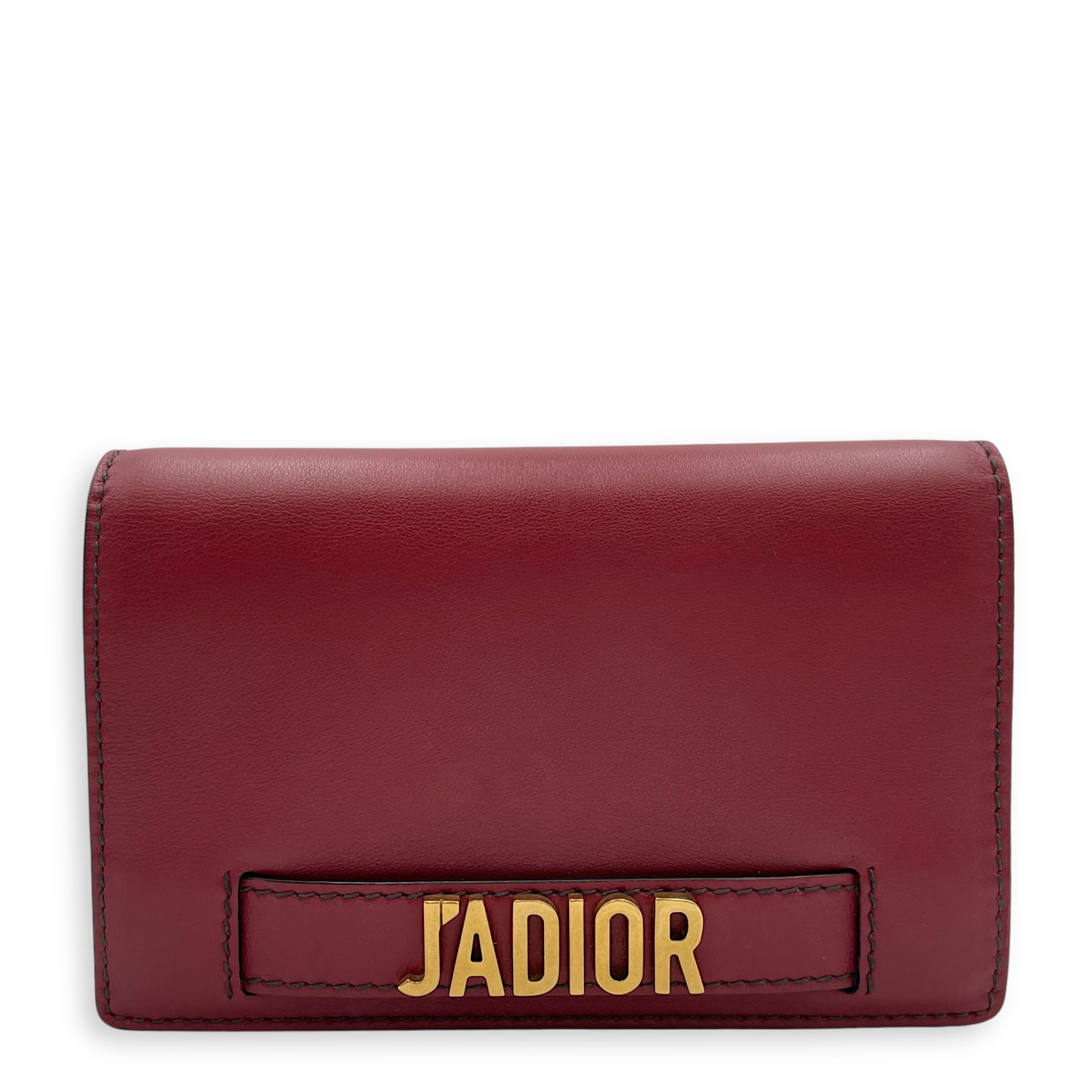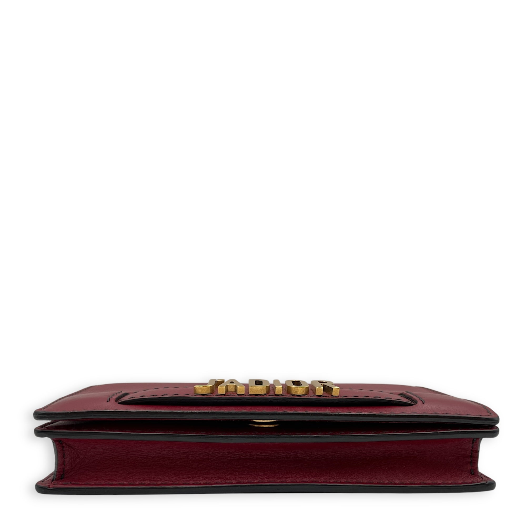 J’Adoir Red Wallet On Chain in Calfskin, Brushed Gold hardware
