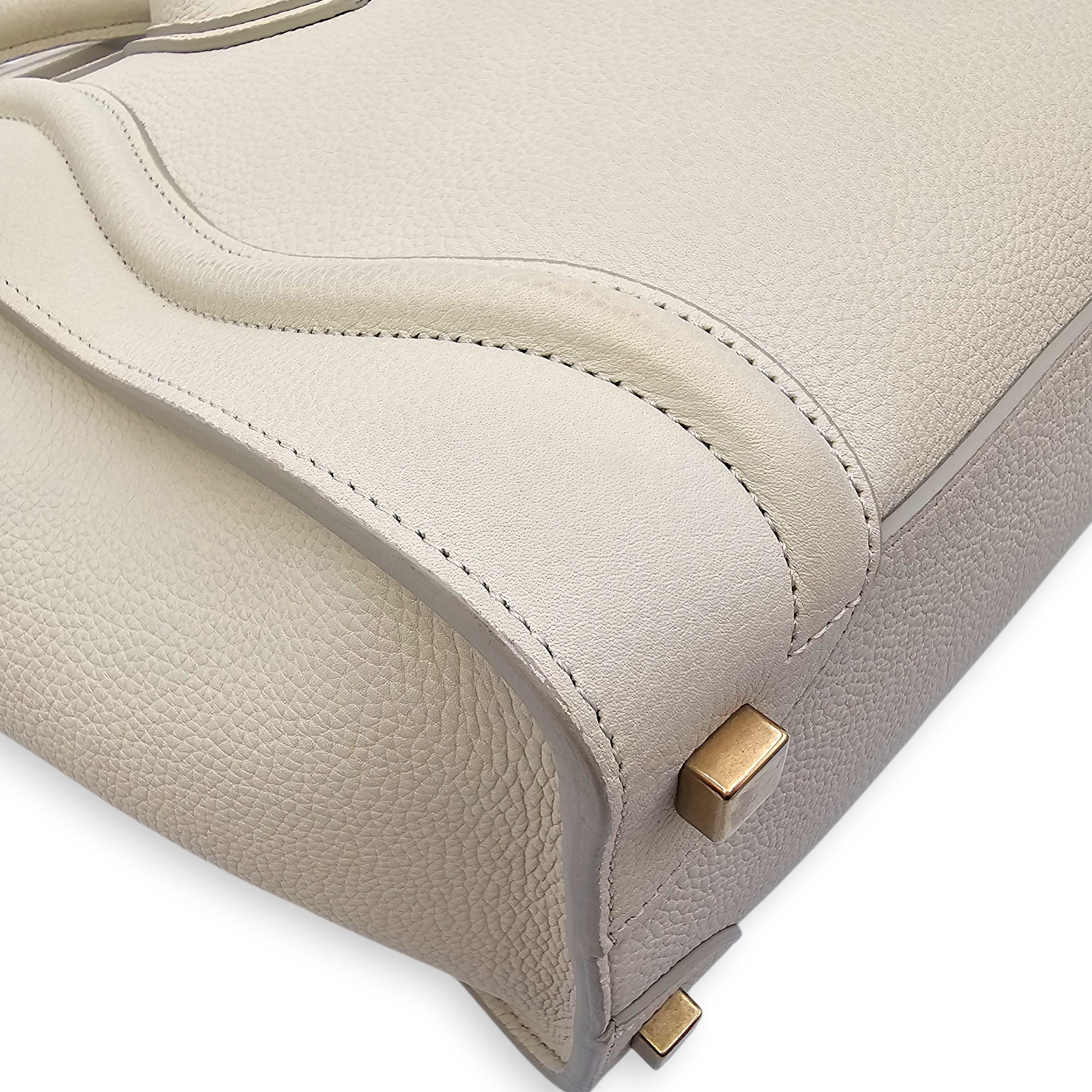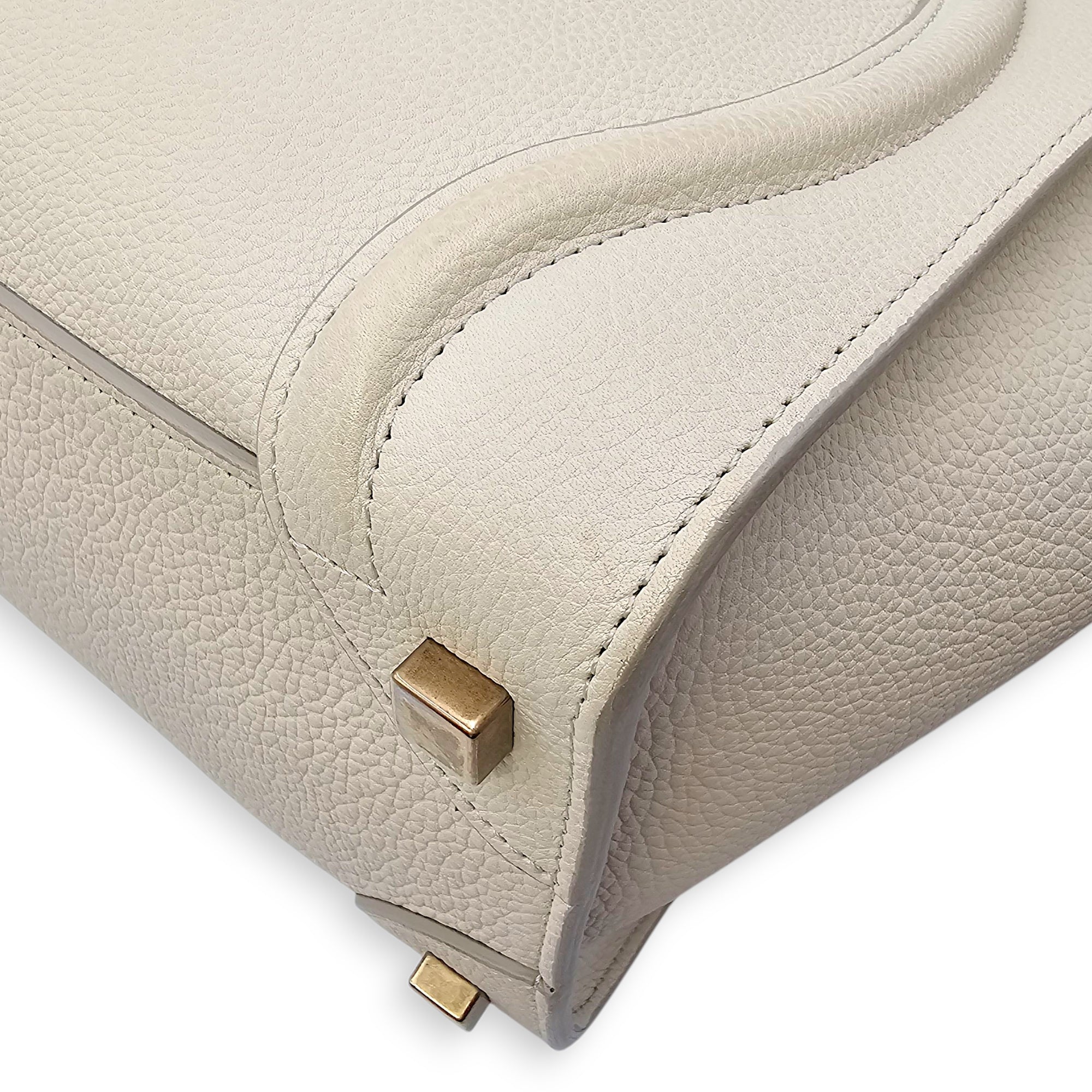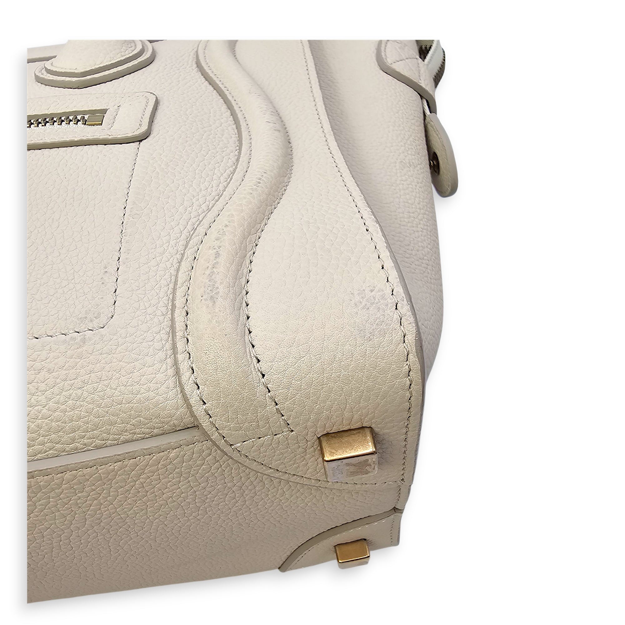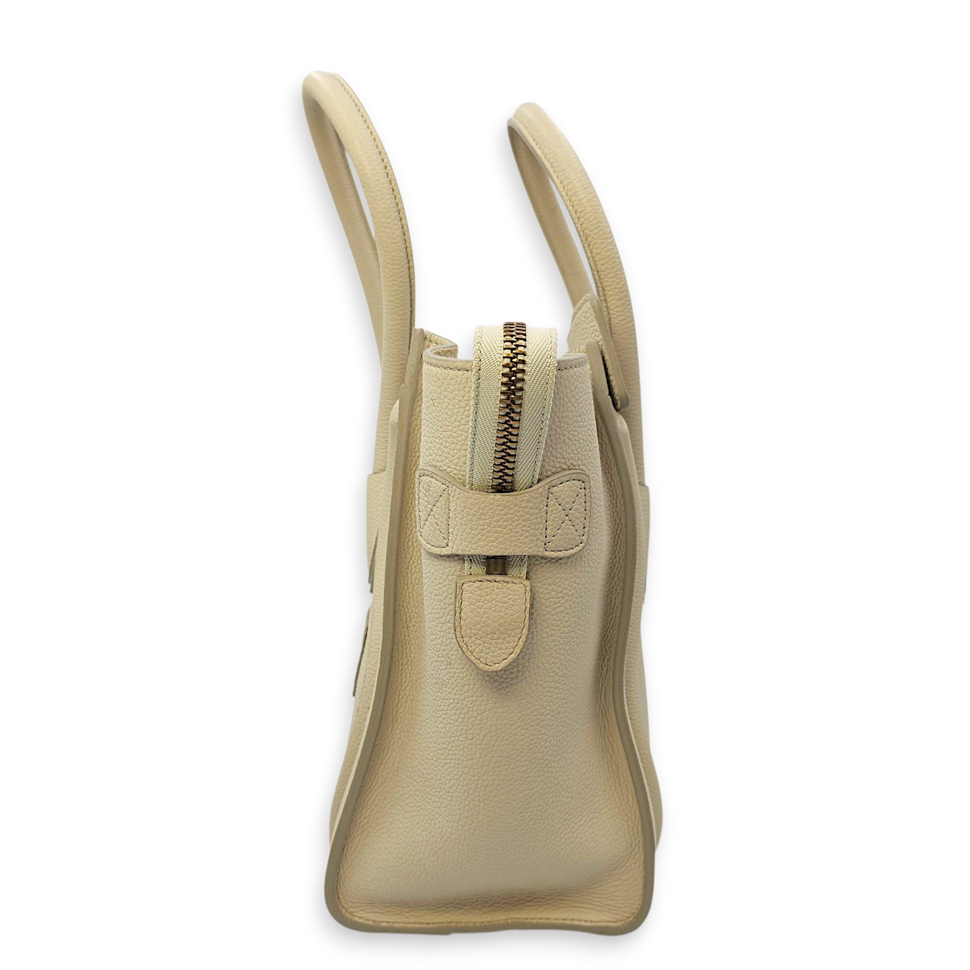 Micro Beige Luggage Bag in Calfskin, Gold hardware