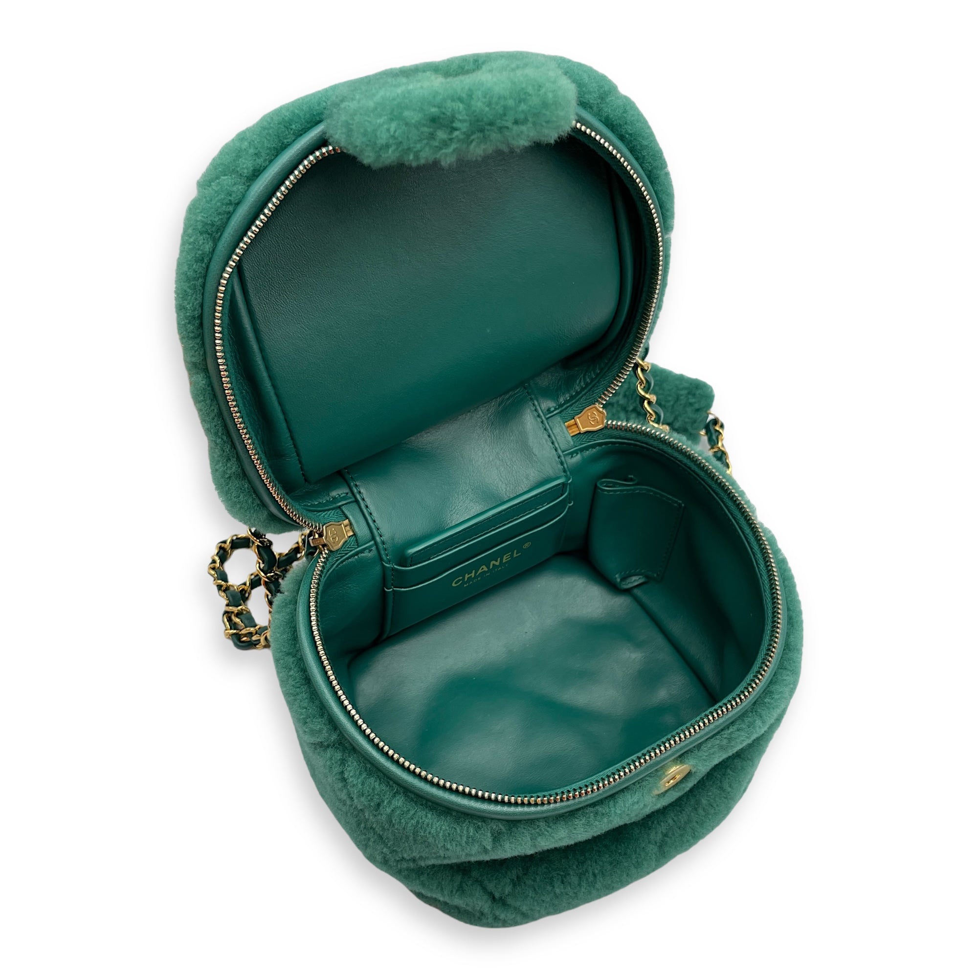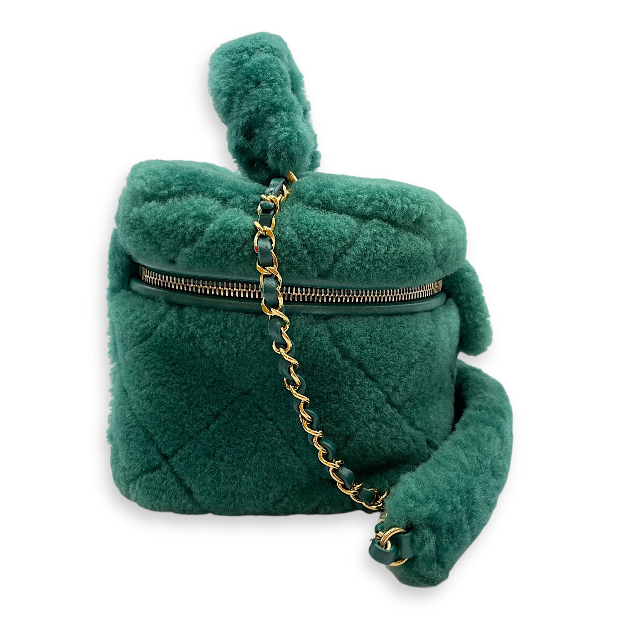 Be the first to review “Shearling Quilted Vanity Green Shoulder Bag in Lambskin, Gold hardware”