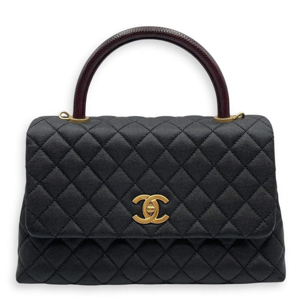 Coco Lizard Handle Medium Black Flap Bag in Caviar Leather, Gold hardware
