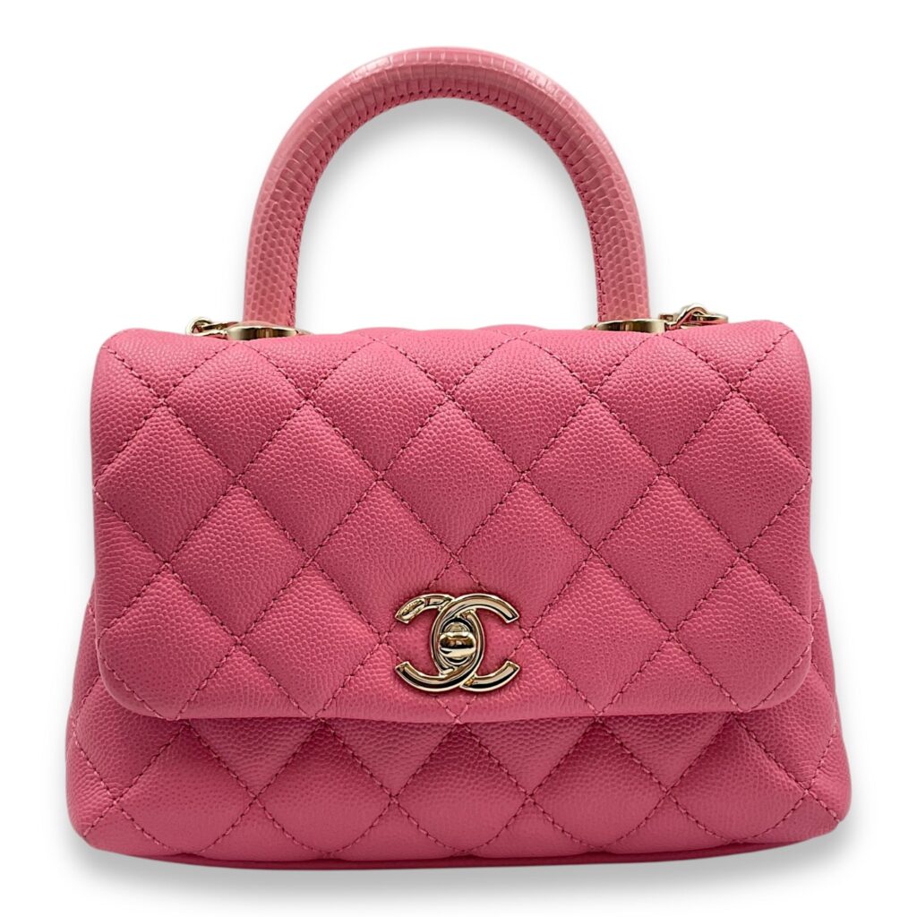 Coco Handle Mini Pink Shoulder Bag in Caviar Leather, Gold hardware