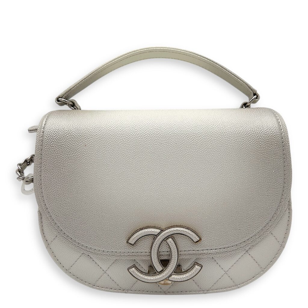 Coco Curve Top Handle Bag White in Caviar Leather, Silver hardware