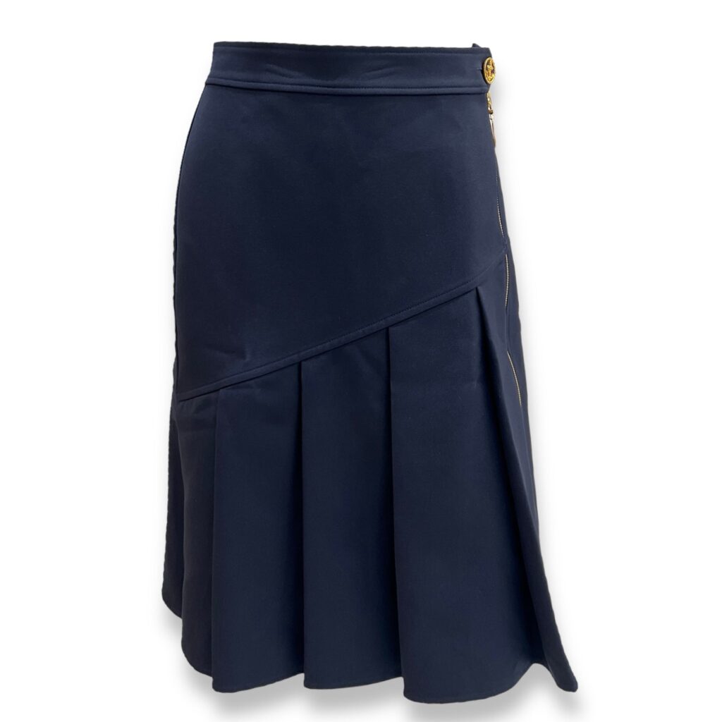 Pleated Skirt With Bias Pleats 34 Blue Ready-To-Wear in Polyester,Silk, Gold hardware