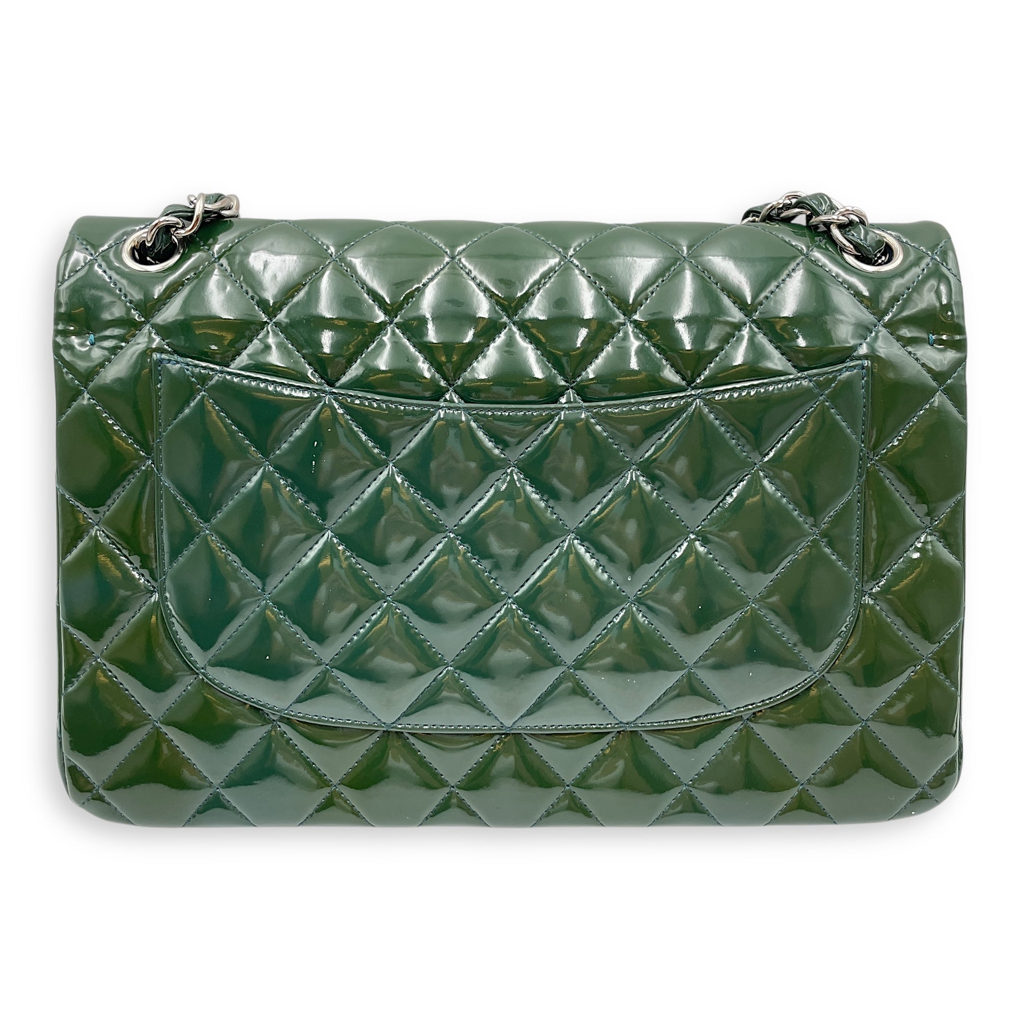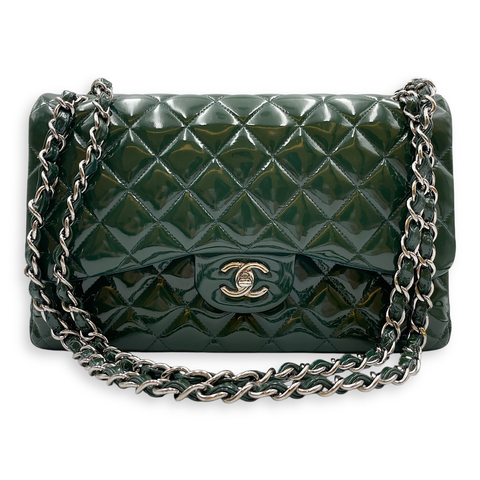 Be the first to review “Classic Double Flap Jumbo Green Shoulder Bag in Patent Leather, Silver hardware”