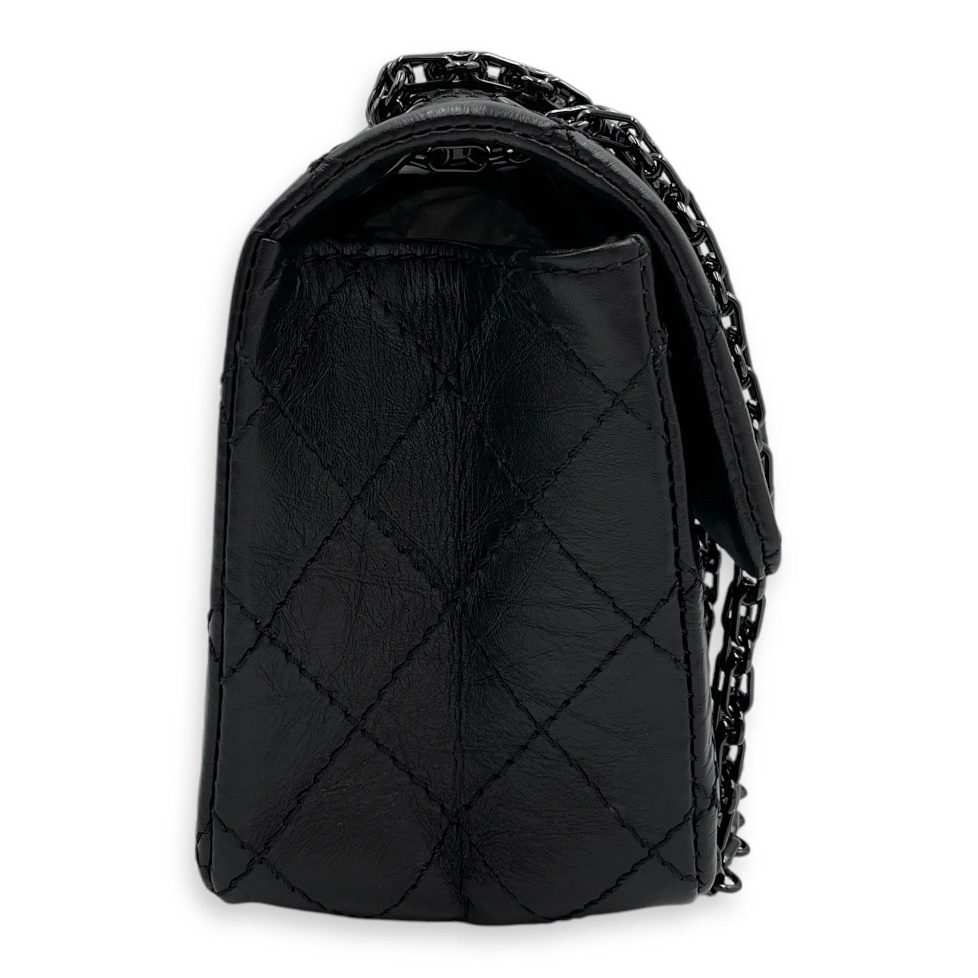 Classic Reissue 2.55 Mini SoBlack Shoulder Bag in Distressed Leather, Gunmetal hardware