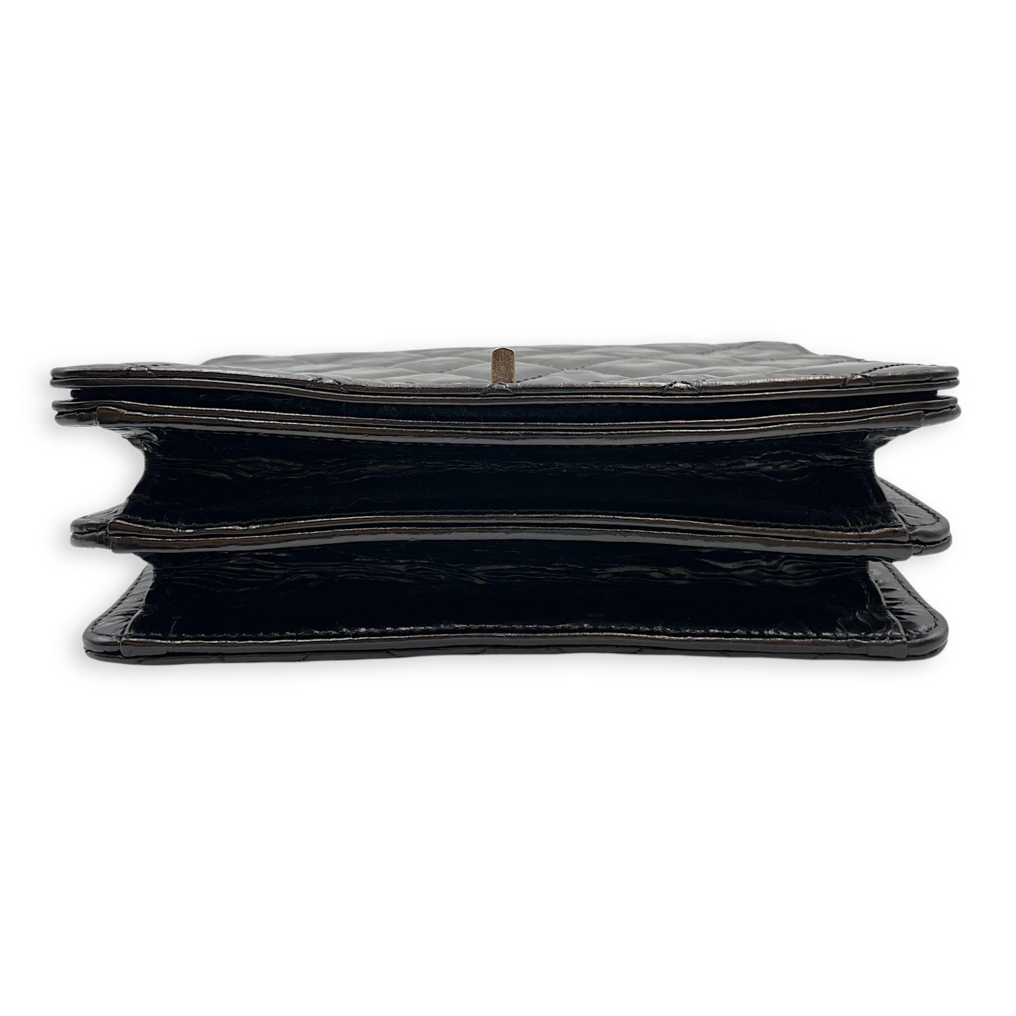 Be the first to review “Crinkled Quilted Rita Flap Black Shoulder Bag in Distressed Leather, Brushed Gold hardware”